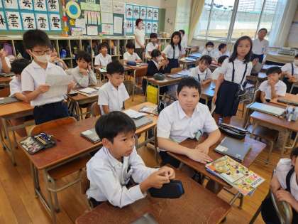 社会科の時間に、「ごみ」や「下水」の処理について学んでいる4年生。
