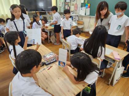 自分がつくったリーフレットを使って、3年生にわかりやすく伝えようと頑張っている4年生!
