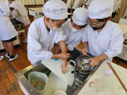 今日は“予行演習”ということになりますが、実際にやってみて作業の段取りや班での協力など、初めて分かったことも多く、子どもたちにとってはよい経験の場となりました。