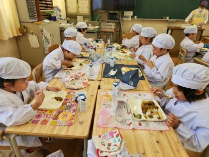 かぼちゃやなす、トマトにピーマンなど、彩りも良い夏野菜をふんだんに使ったカレーライス、子どもたちからも大好評でした!