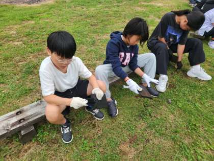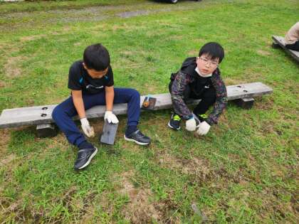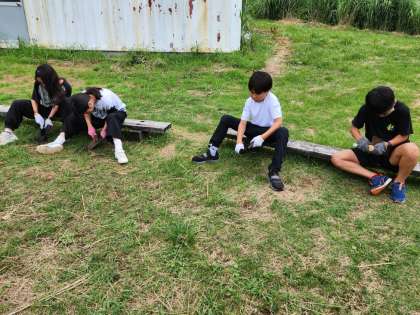 天候の関係で、明日予定していた「焼き板づくり」を、今日行っています。