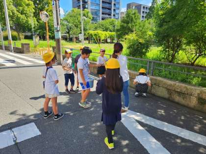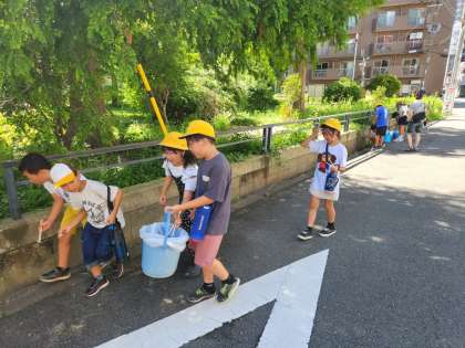 今日も大変暑い中、ボランティアの子どもたちが集まり、学校周辺の道路をきれいにしてまわりました。