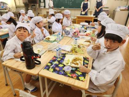 2学期開始後しばらくは、暑さが厳しいこともあり、子どもたちの食が進むよう、ピリ辛味やさっぱり味の献立、カレーや丼もの、麺類のように食べやすい献立など工夫がなされています。