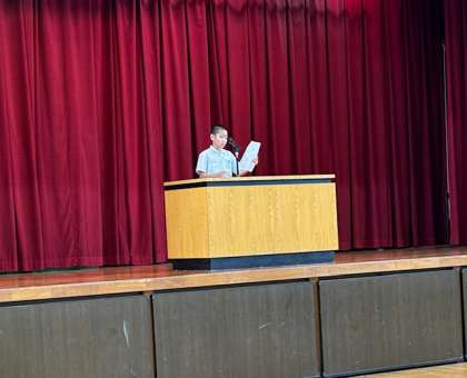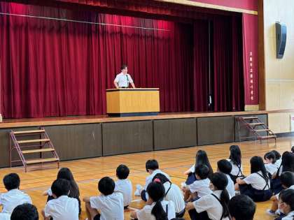 今日の朝会では、校長先生から9月1日の防災の日についてお話がありました。