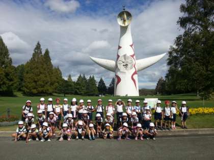 今日は、待ちに待った「秋の遠足」。好天に恵まれ、全員が元気に参加することができました。万博記念公園も青空です。