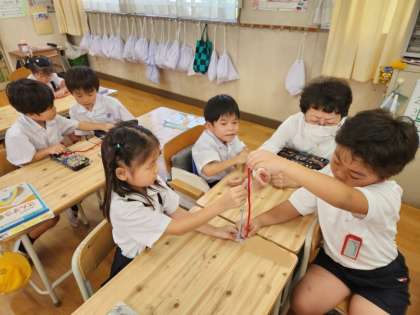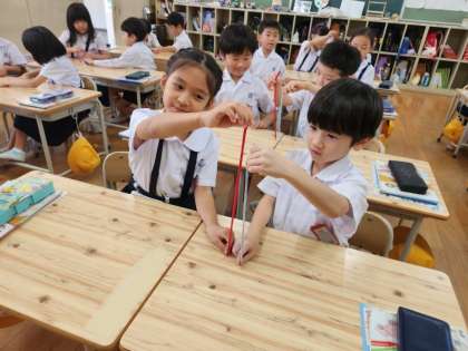 1年生の算数は、今日から「おおきさくらべ」の学習に入りました。
