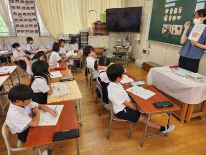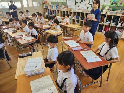 今日は栄養教諭の先生にお越しいただき、1年生、2年生で「栄養指導」が行われました。