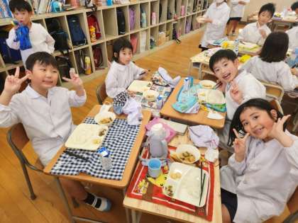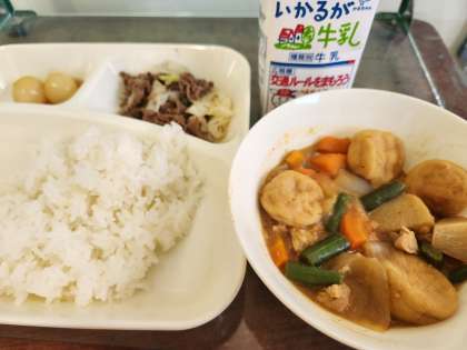 今日は「月見の行事献立」ということで、秋の収穫を感謝する「里芋」と「だんご」を使った献立が登場しています。