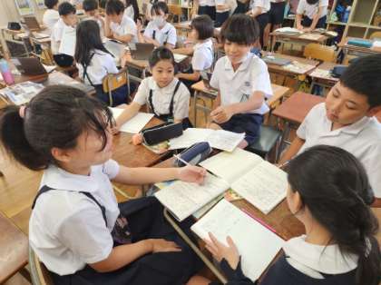 今日はかつて大阪府に甚大な被害をもたらした「台風」について、どのような被害が生じたのかを班ごとに調べました。