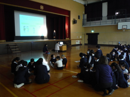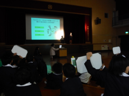 児童集会で,健康委員会による「クイズで学ぼう」を行いました。