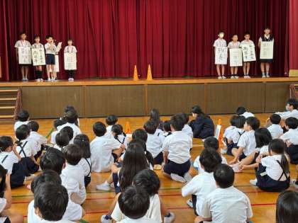 1年生は、6年生にフォローされながらがんばって運んでいました。