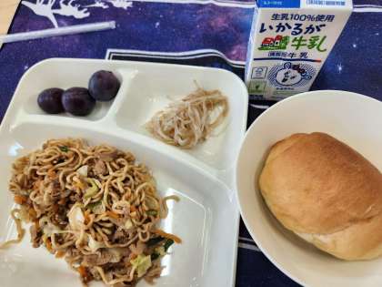 今日はオイスターソース味の“やきそば”が献立に登場です。