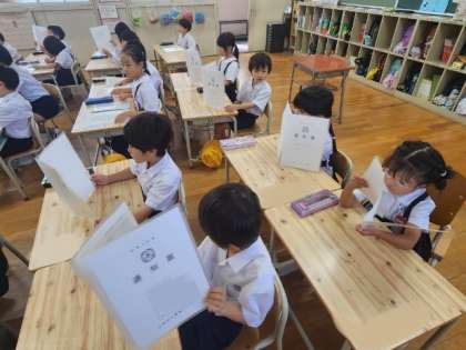 1年生の子どもたちにとっては小学校に入学してはじめての「通知票」ということで、担任の先生から通知票が手渡されると、珍しそうな様子で通知票に見入る姿が見られました。