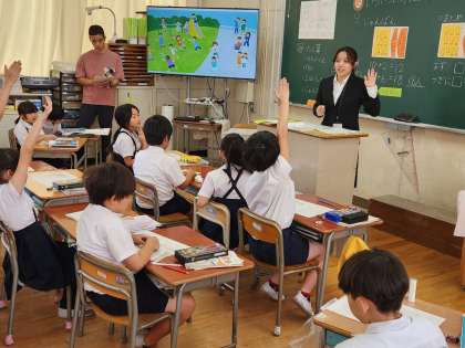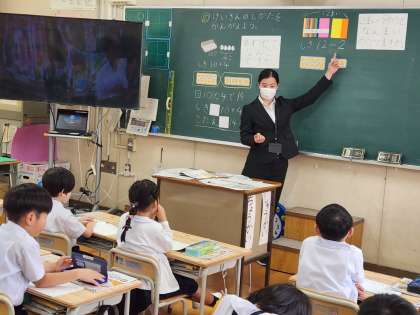 豊崎小学校には現在、1年生と2年生のクラスに教育実習生さんが勉強に来られています。