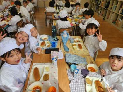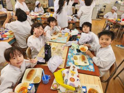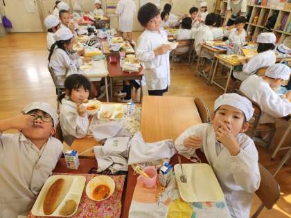 今日の給食時の様子は、2年生の写真を使っています。