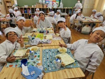 今日の給食時の様子は、3年生の写真を使っています。