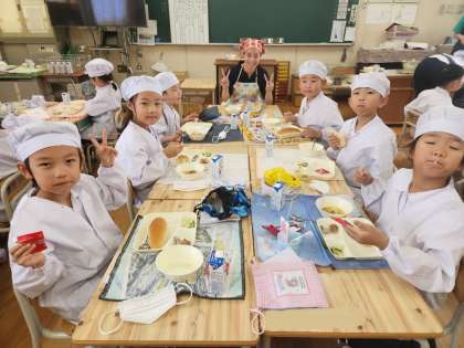 教育実習生さんが今日が実習最終日ということで、1年生、2年生の教室で写真を撮りました!