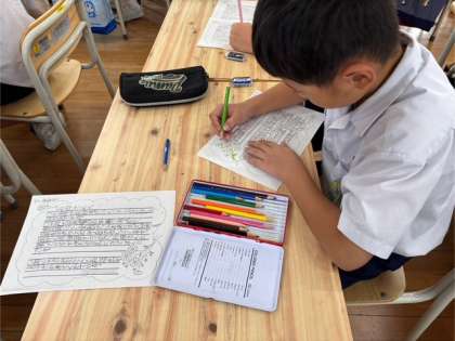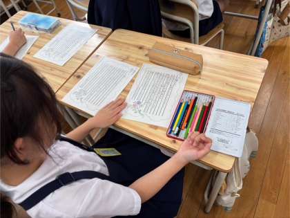 来週の月曜日に3年生は、豊崎ふれあい喫茶に参加します。その案内を、分かりやすく文章にまとめ、心を込めて清書していました。