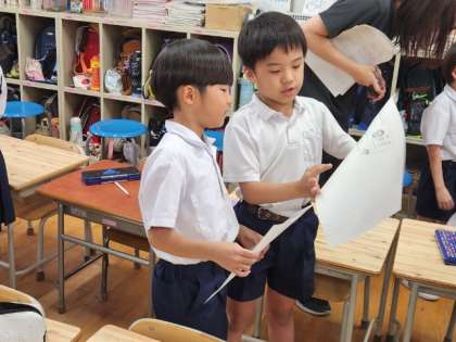 算数科の授業で、たし算・ひき算を使った問題を、かずの増減量に着目して、まとめて考える方法を学んでいきます。