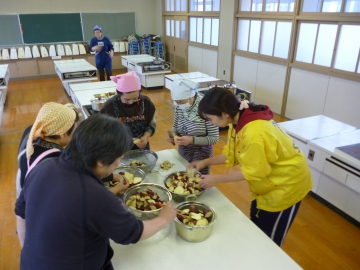 放課後には,地域の連合振興町会の女性の方々に来ていただき,『蒸す』お手伝いをしていただきました。
