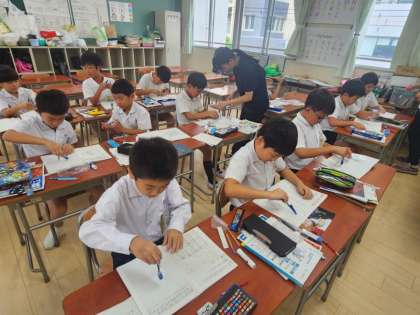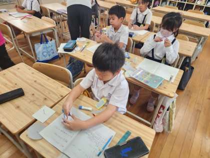 算数の時間に「円」について学習している3年生。