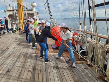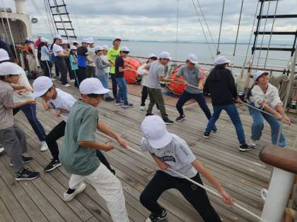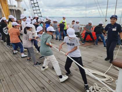 みんなで力を合わせてマストをはっていきます。