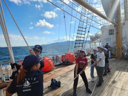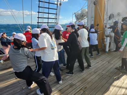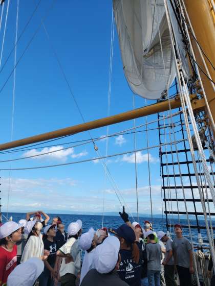 みんなで力を合わせて、畳帆します。