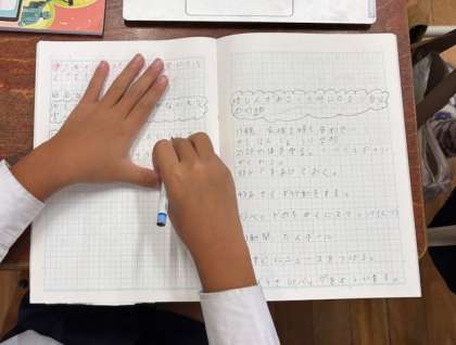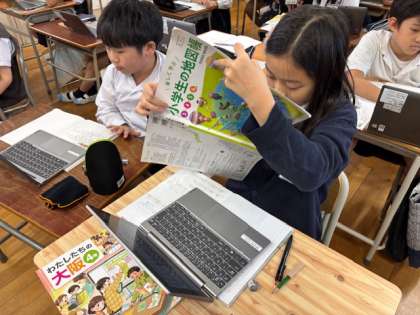 ?4年生は、これまでに学習してきたことをもとに、自然災害が起きた時に自分自身を守る方法や、日ごろから必要な備えなどをノートにまとめていました。