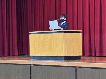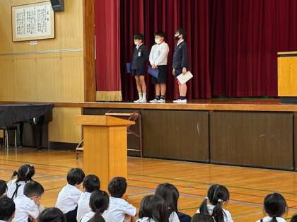 「ひとりひとこと」では、6年生児童は修学旅行について、5年生児童は、6年生が不在の時に高学年として頑張ったことについてしっかり発表することができました。