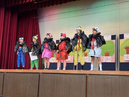 学年で取り組んだ「あいさつの実」の数や、あいさつすごろくの各学年1位と2位の発表がありました。