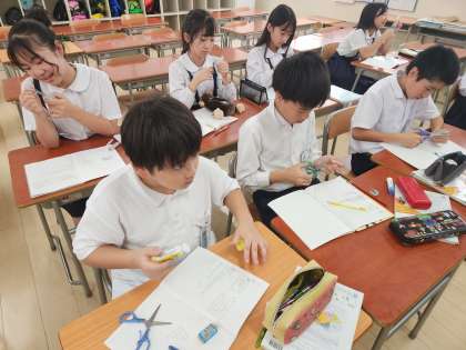 今日は教科者やノートを使うだけでなく、実際に三角形を切り取って、面積を求める方法を考えました。