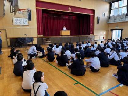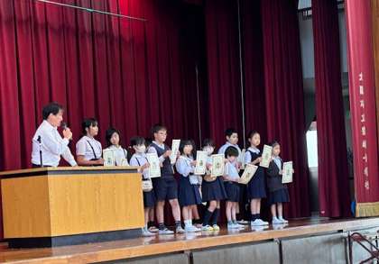 今日の朝会では、昨日の北区民カーニバルと、一昨日の中国弁論大会についてのお話がありました。