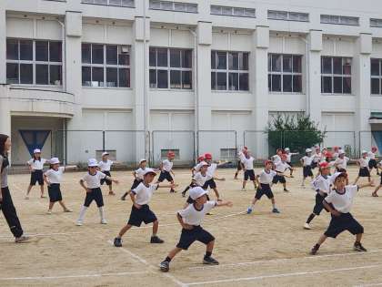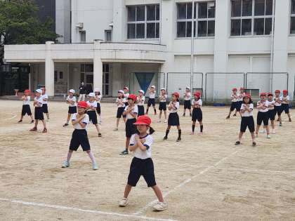 運動会の練習、1年生と2年生でも、運動場を使っての練習が始まりました。