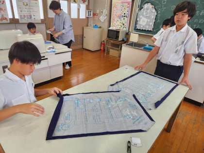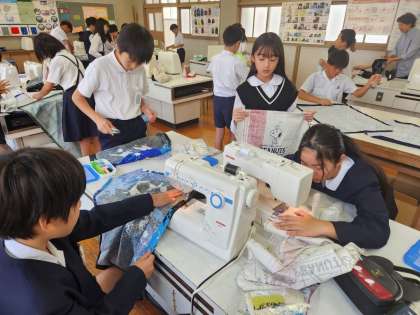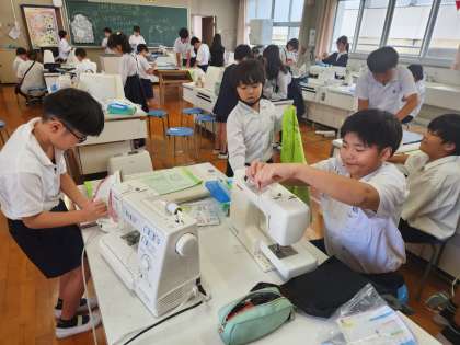 5年生は家庭科の時間にエプロンづくりに取り組んでいます。