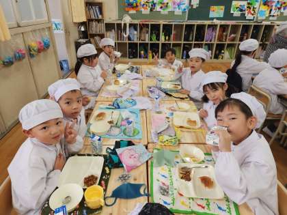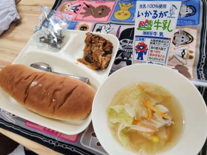 「なす」はちょっと苦手…、という子もいますが、今日はミートグラタンの具材の一つとしてうまく取り入れられています。