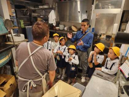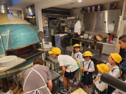 子どもたちからの質問にお店の方がていねいに答えていただき、厨房にある火の入った大きな石窯も見せていただき、子どもたちは大喜びでした。