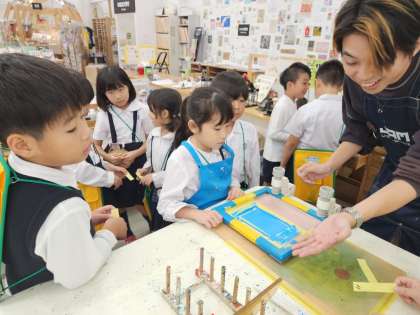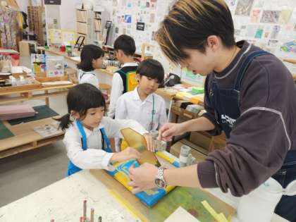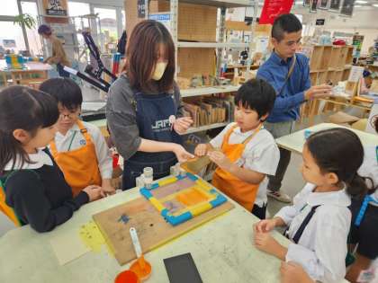 印刷に挑戦中の子どもたち。
