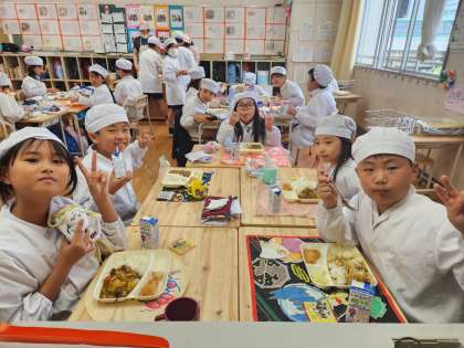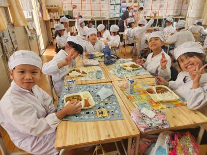 今日の給食時の様子は、3年生の写真を使っています。
