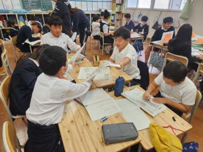 国語の時間に「和の文化」について調べたことを1枚のポスターにまとめる学習をしてきた5年生。