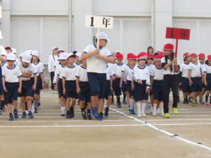数日前には雨の予報が出ていましたが、すっきりと晴れわたった中、いよいよ運動会が始まりました!