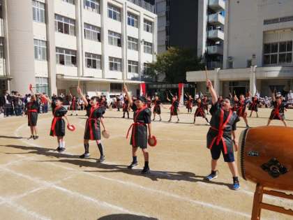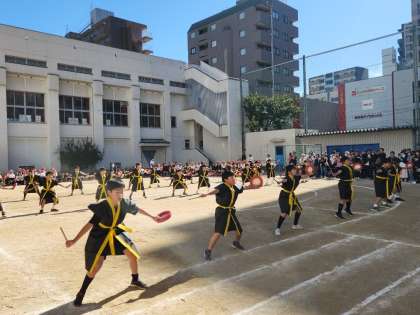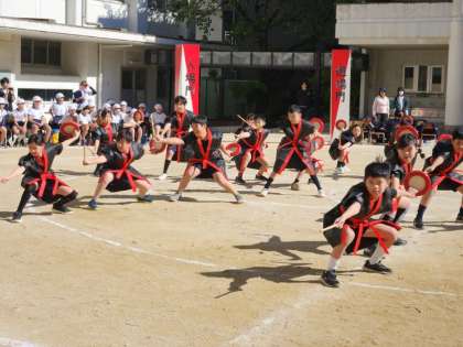 3・4年生の団体演技は、沖縄の伝統芸能「エイサー」をアレンジした「豊崎エイサー」です!