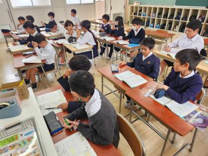 面積の大きさを表す単位を別の単位で表すときにはどのようにすればよいか、子どもたちはじっくりと考えながら、問題を解き進めています。