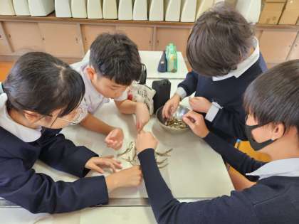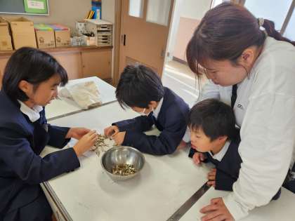 今日は実習に向けて、お味噌汁の“だし”に使う“にぼし”の頭とはらわたを取って、明日の準備を整えました。