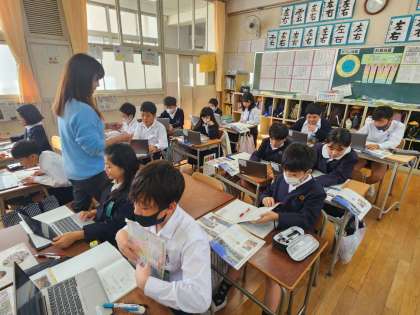 今日は映像資料とインターネット資料などから「天神祭」のことについて調べる学習が行われました。