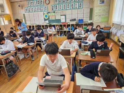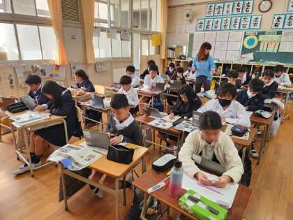 4年生は社会科の時間に「大阪府に伝わる祭りや行事と先人たち」をテーマに、大阪府を代表する祭り「天神祭」についての学習が始まっています。