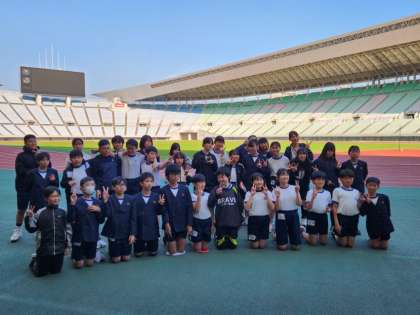 ヤンマースタジアムをバックに、記念写真も撮りました!