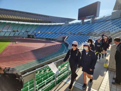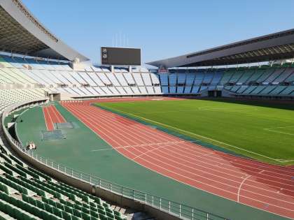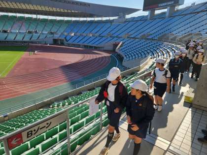 サッカーの国際試合や陸上の世界選手権などが開かれる場所で、子どもたちは1日、スポーツを楽しみます。