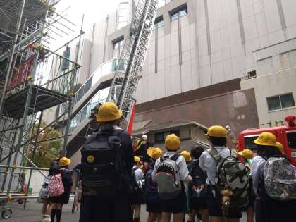 ご挨拶の後、まずは消防ハシゴ車を見せてもらいました。