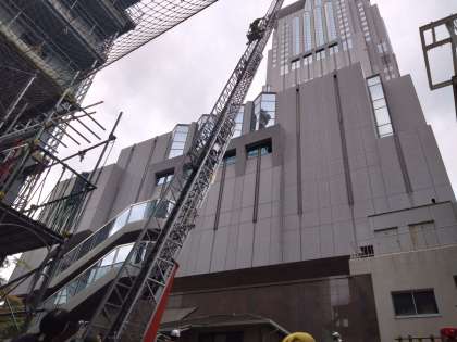 今回見せて頂いたハシゴ車は、大阪市にわずか2台しかない50メートルもハシゴ部分が伸びる消防車だそうです。