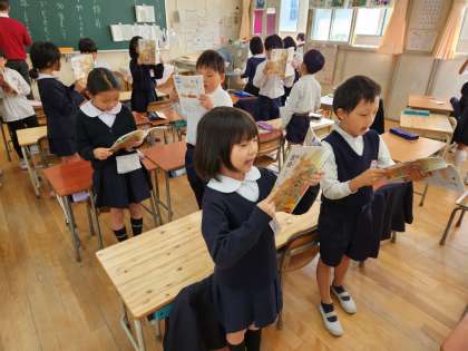 2年生は国語の時間に「かさこじぞう」の学習に入りました。